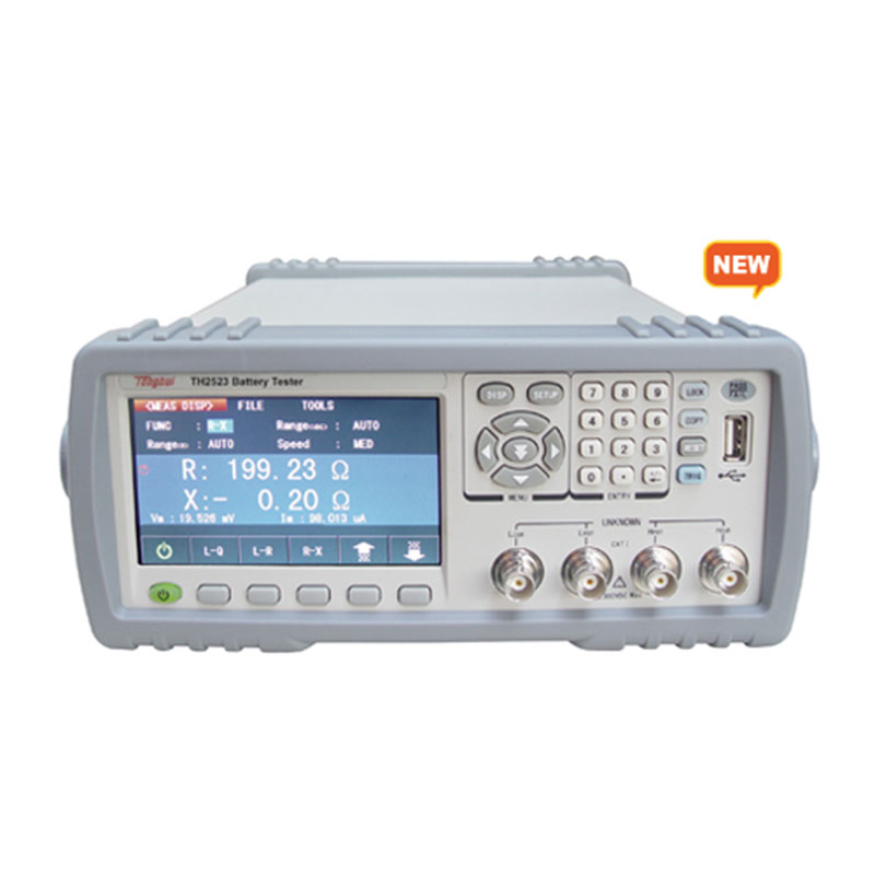 同惠電子憑借其在阻抗測(cè)試領(lǐng)域深厚的技術(shù)積淀和廣泛的市場(chǎng) 調(diào)研,推出了彩色液晶顯示的電池測(cè)試儀器---TH2523電池測(cè)試 儀。其卓越的性能、便捷的操作、精美的外觀足以媲美任何競(jìng)爭(zhēng) 產(chǎn)品。采用1kHz頻率的測(cè)試恒流源,很好的消除了熱電勢(shì)對(duì)被測(cè)元件 接觸的影響而引起的潛在誤差。高達(dá)300V(TH2523A)最大測(cè)試電壓能滿足高壓電池的需求。0.1%的基本電阻測(cè)量準(zhǔn)確度,30mΩ-3000Ω的量程能夠覆蓋到 大部分大型的電池組到紐扣電池的電阻測(cè)試要求,更能滿足一些趨向大型化、低阻化的鋰電池。最快測(cè)試速度更是能達(dá)到20ms/次左右。能夠滿足一般元件的交流低電阻測(cè)量要求。TH2523提供了幾乎所有主流的接口功能,可方便的與PC進(jìn)行數(shù) 據(jù)通訊和遠(yuǎn)程控制。