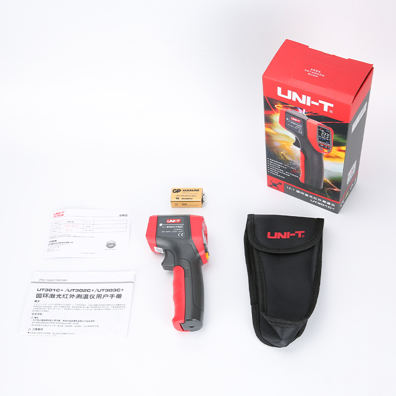 新型UT301C+是根據您的現場需求量身設計的一款高精度、高能量級(95%)、高重復性、多功能、堅固耐用且易于操作的紅外測溫儀。UT301C+具有可調節的高低溫可視和聲音報警功能,響應速度小于250ms,可幫您快速發現異常及問題;其發射率可調節且可存儲5組設置好的預備發射率,以確保您根據不同表面快速切換發射率以測得更精確的值;它配備了扳機鎖定功能、最大值最小值平均值差值保持功能、三腳支架,非常適合需要對溫度進行監控的工藝過程;配備了精準的實時時鐘和多達99組的數據存儲功能,方便您更快、更好、更高效地完成工作;還配備了預約測量功能,在約定的時間進行測量并存儲多達99組,適合需要對溫度進行長期周期性監控的工藝過程。適用于配電巡檢、暖通維護、運輸設備檢驗、設備維修、汽車故障檢修等領域。