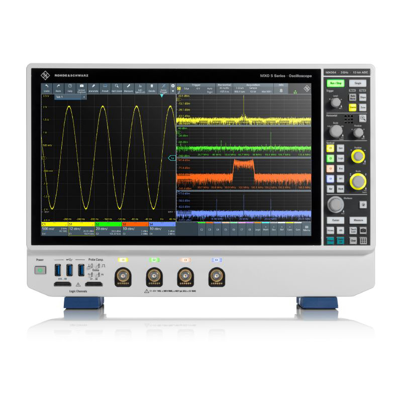 R&S®MXO 5的波形捕獲率超過450萬波形/秒,能夠在需要檢測錯誤的應用中進行信號測試。R&S®MXO 5幾乎沒有盲區時間,能夠檢測到其他示波器可能遺漏的罕見事件和隨機事件。最重要的是,R&S®MXO 5可以在激活多達四路通道的情況下保持高捕獲率。基本測量和數學運算基于硬件加速。R&S®MXO 5提供四路基于硬件加速的頻譜通道。示波器每路通道的頻譜采集率高達45 000 FFT/s,總采集率可達180 000FFT/s,能夠快速測試和調試諧波、EMI或其他需要一流頻譜功能的應用。