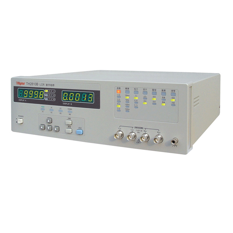 TH2810B型LCR數字電橋是一種測試速度快、精度高、測試范圍寬的通用阻抗測量儀器。 四個測試頻率點,最高至 10 kHz, 30 Ω 、100 Ω兩種不同信號源輸出阻抗可使儀器測量結果與眾多LCR結果相一致,同時也能適應陶瓷電容器對測量電平的要求。可滿足生產線質量保證、進貨檢驗的測量要求。 技術參數