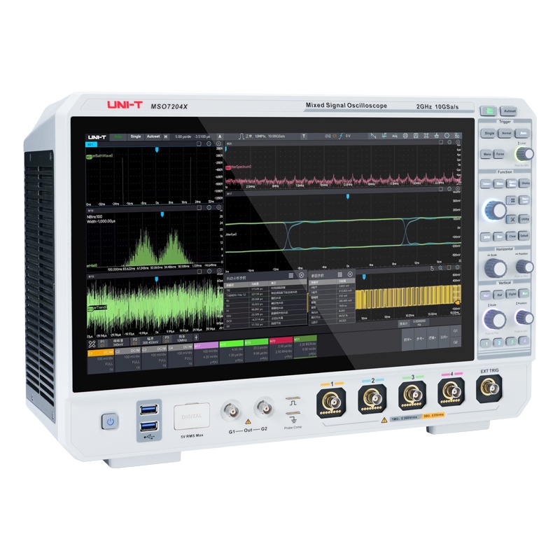 混合信號示波器,2GHz帶寬,10GS/s采樣率,1000000wfms/s波形更新率,1Gpts存儲深度,4通道,16通道LA,雙通道60M AWG,15.6英寸觸摸屏。