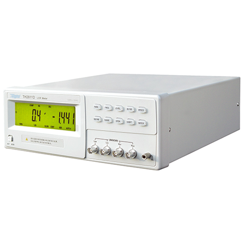 TH2811D型LCR數字電橋是本公司最新研制的低頻元件測量的換代產品, 其中應用多項元件測量的最新技術,大字符LCD顯示,采用SMT貼片工藝,操作方便,外形美觀。可滿足生產線質量保證、進貨檢驗及自動化生產的需要。RS232C接口可為用戶提供遠程控制及測試數據的統計和分析。