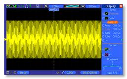 | 觸發靈敏度(邊沿觸發類型) | 直流(CH1,CH2): 從直流到10MHz為1格; 從10MHz到100MHz為1.5格; 從100MHz到最大量程為2格; 直流(EXT): 從直流到100MHz為200mV; 從1000MHz到最大量程為350mV; 直流(EXT/5): 直流到100MHz是1V; 從100MHz到最大量程是1.75V; 交流:衰減10Hz以下信號 高頻抑制:大于80kHz時將衰減信號 低頻抑制:頻率大于150kHZ時,與直流耦合限制相同,小于150kHZ |